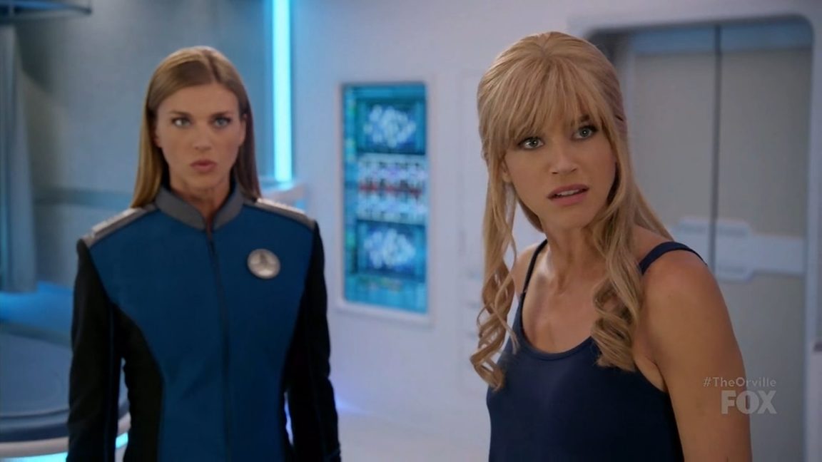 The new Kelly is in shock at first, but forms a fast friendship with Talla, who also hasn’t been on the ship that long. She attempts to bond with other members of the crew by telling a story about something she did in the past, but this upsets the original Kelly, who has to command the others on the ship and feels like she is being undermined. The new Kelly doesn’t want to have to be guarded around everyone, but the original Kelly tells her that they should be able to share anything with each other because they are the same person. In the end, the new Kelly decides that she wants to stay on the Orville and asks Ed out on a, for her, second date.